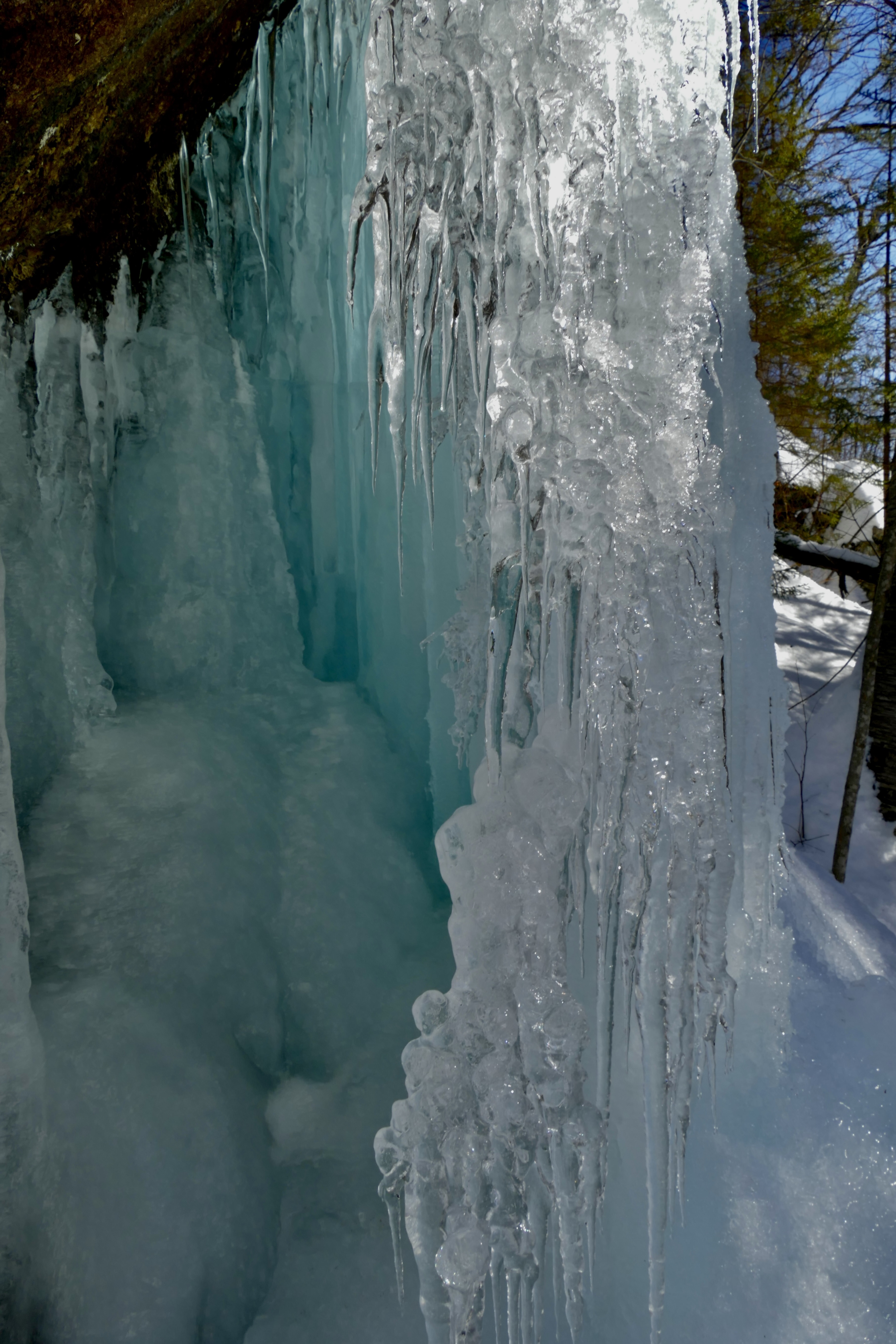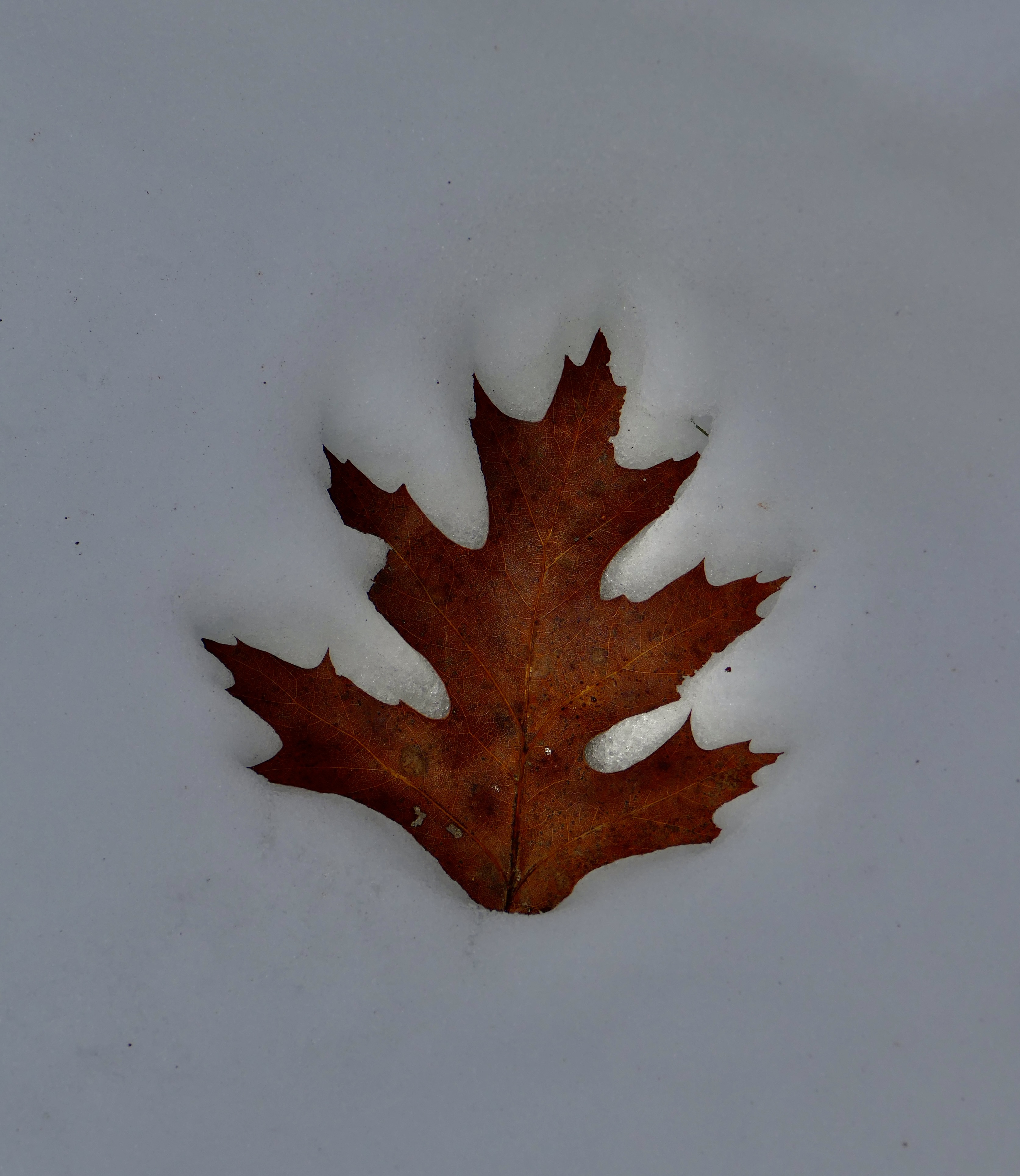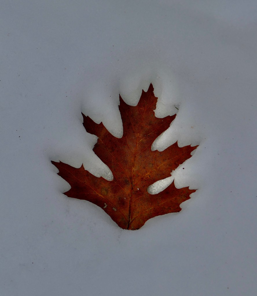 I frequently see where oak leaves–absorbing the heat of the sun have sunk in to the ice & an inch in depth & afterward been blown out–leaving a perfect type of the leaf with its petiole & lobes sharply cut–with perfectly upright sides–so that I can easily tell the species of oak that made it. Sometimes these moulds have been evenly filled with snow–while the ice is dark–& you have the figure of the leaf in white.