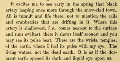 And I have seen, on the surface of the Walden ice, great sweeping, waving lines, somewhat like these. It is the track of the wind, the impress which it makes on flowing materials.