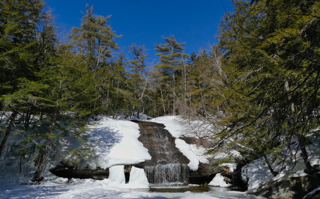 The slight robin snow of yesterday is already mostly dissipated, but where a heap still lingers the sun on the warm face of this cliff leads down a puny, trickling rill, moistening the gutters on the steep face of the rocks…You can trace the course of this trickling stream over the rock through such a patch of lichens by the olive green of the lichens alone. Here and there the same moisture refreshes and brightens up the scarlet crown of some little cockscomb lichen,