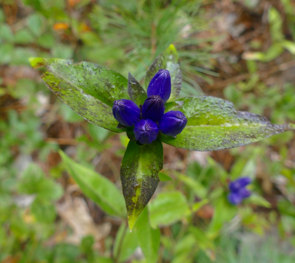 The soapwort gentian cheers & surprises with solid bulbs of blue from the shore—the stale grown purplish. It abounds along the river—after so much has been mown.