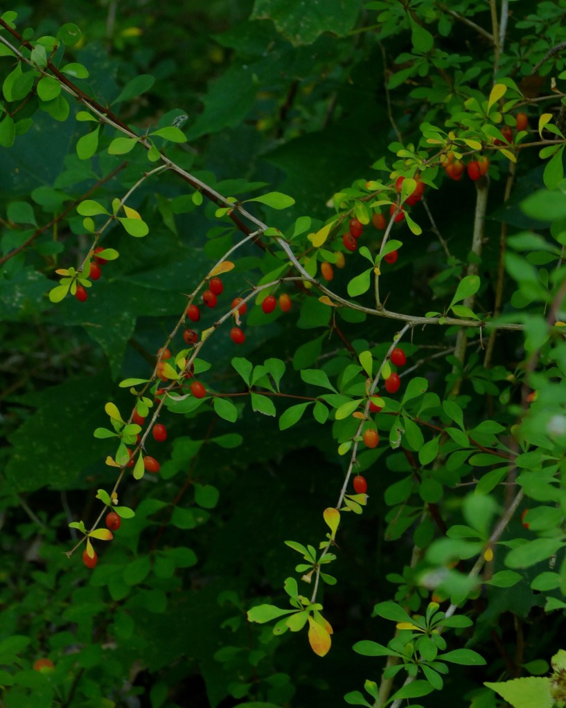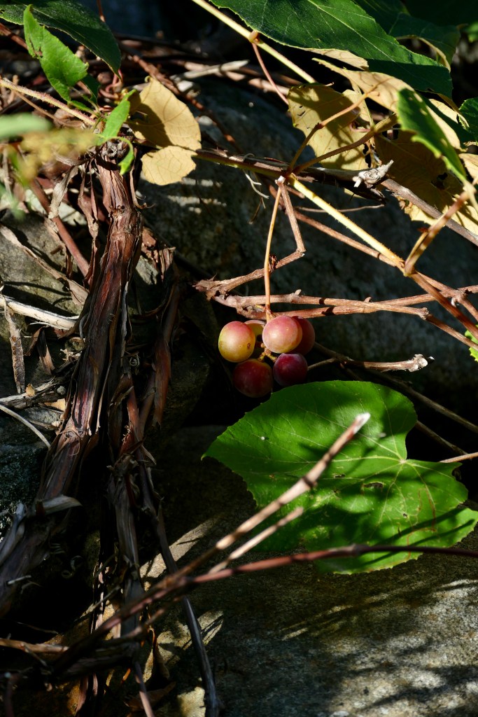 The fragrance of grapes is on the breeze & the red drooping barberries sparkle amid the leaves…