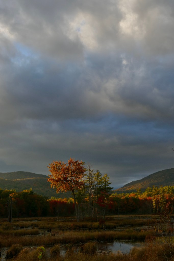 The brilliancy of the scarlet oak being generally dulled, the season of brilliant leaves may be considered over, ––say about the 10th; and now a new season begins, the pure November season of the russet earth and withered leaf and bare twigs and hoary withered goldenrods, etc.