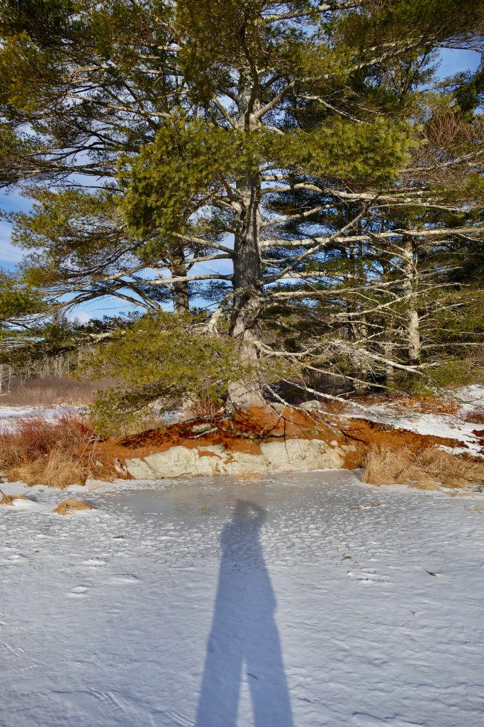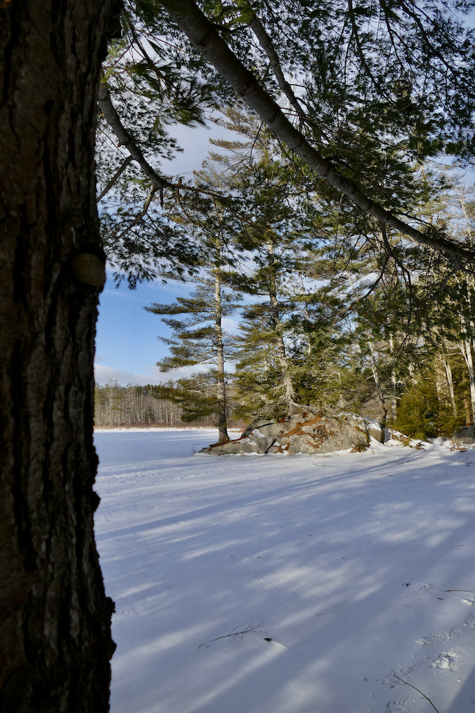 A mild, thawy day. The needles of the pine are the touch-stone for the air—any change in that element is revealed to the practiced eye by their livelier green or increased motion. They are the tell-tales. Now they are (the white pine) a cadaverous, misty blue—anon a lively silvery light plays on them —& they seem to erect themselves unusually—while the pitch pines are a brighter yellowish green than usual—The sun loves to nestle in the boughs of the pine & pass rays through them.