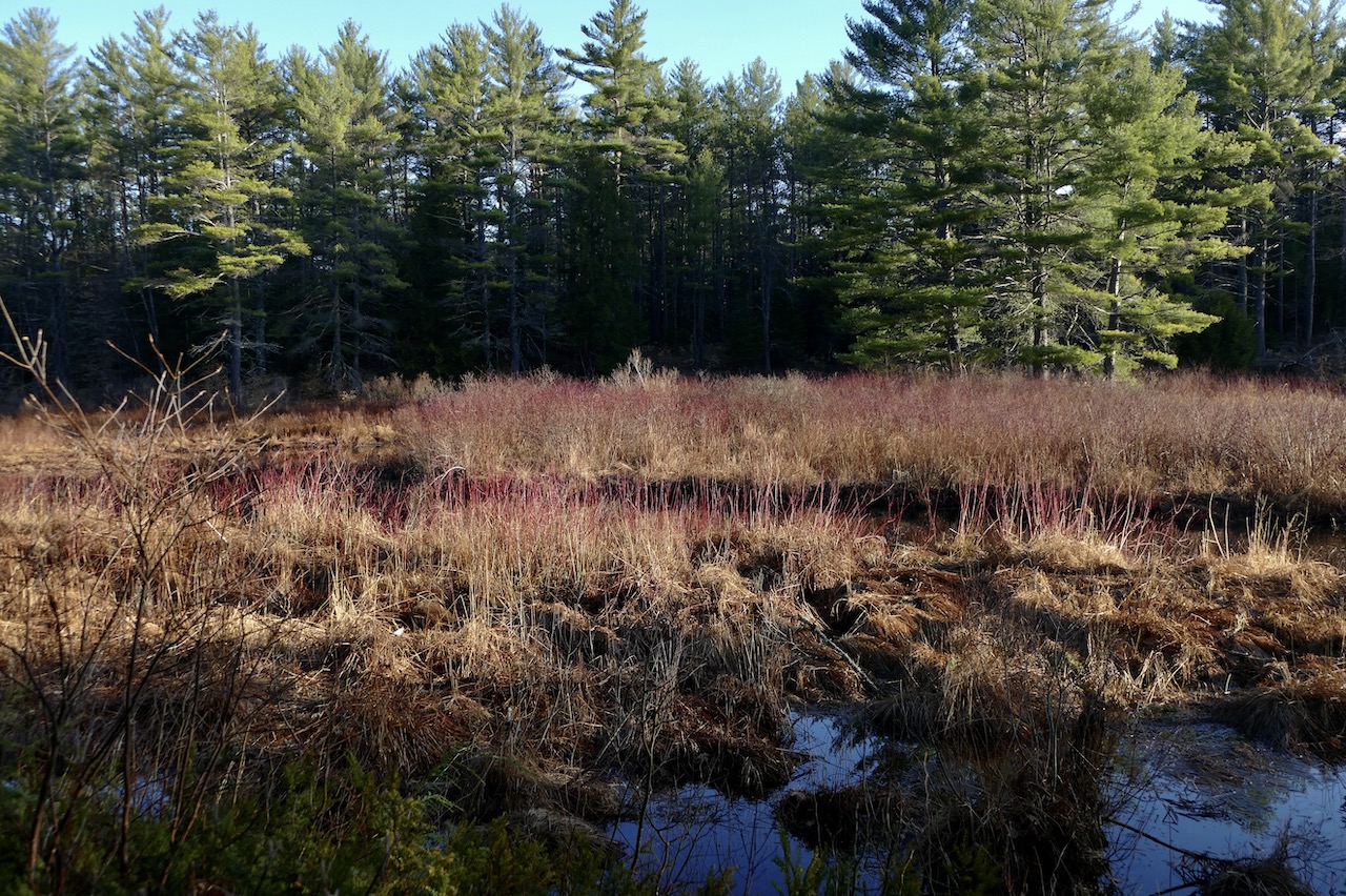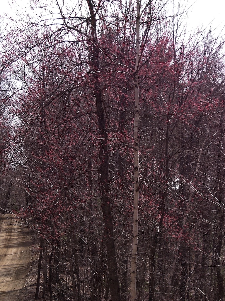 ….maples and birches in front–with pines in the rear—making a low wild shore…The young trees & bushes now making apparent islands on the meadows are there nearly in this proportion I should think i.e. in deep water— Young maples—willows—button bushes—red osier…
