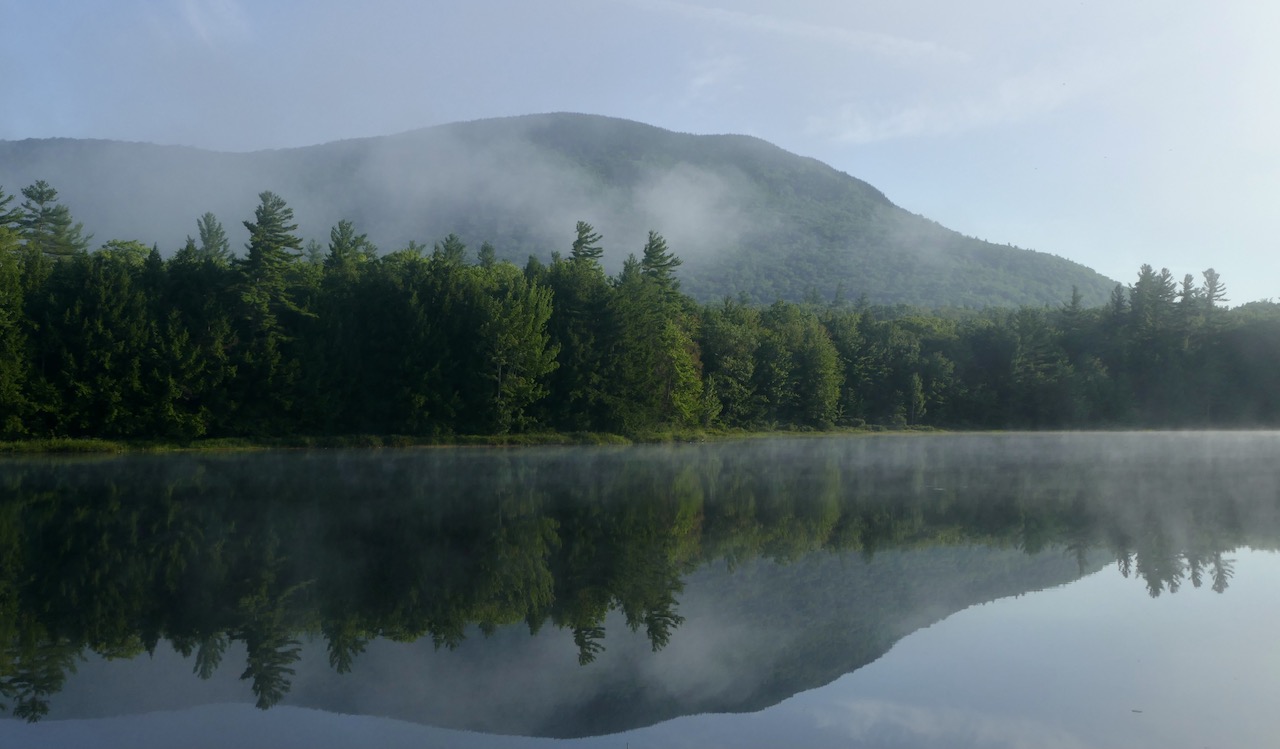 There is a cool east wind, —and has been afternoons for several days, —which has produced a very thick haze or a fog. I find a tortoise egg on this peak at least sixty feet above the pond. There is a fine ripple and sparkle on the pond, seen through the mist. But what signifies the beauty of nature when men are base? We walk to lakes to see our serenity reflected in them.
