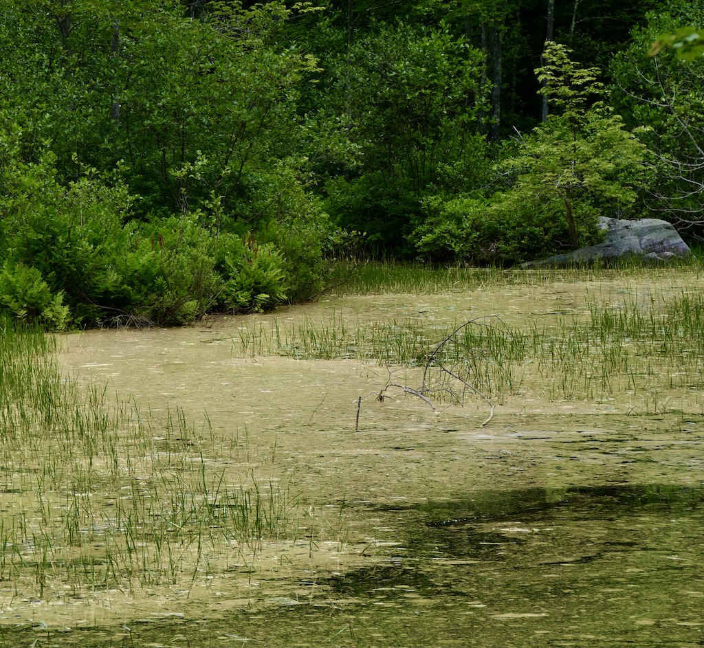 I see in the southerly bays of Walden the pine pollen now washed up thickly; only at the bottom of the bays, especially the deep long bay, where it is a couple of rods long by six to twenty-four inches wide and one inch deep; pure sulphur-yellow, and now has no smell. It has come quite across the pond from where the pines stand, full half a mile, probably washed across most of the way.
