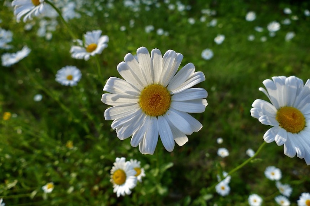 By night no flowers, at least no variety of colors. The pinks are no longer pink; they only shine faintly, reflecting more light. Instead of flowers underfoot, stars overhead.