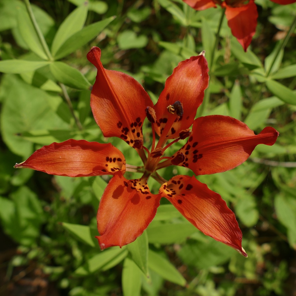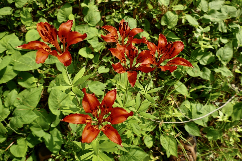 This has come with the intense summer heats– a torrid July heat like a red sunset threatening torrid heat. (Do we not always have a dry time just before the huckleberries turn?-) I think this meadow was burnt over about a year ago. Did that make the red lily grow? The spring now seems far behind–I do not remember the interval.