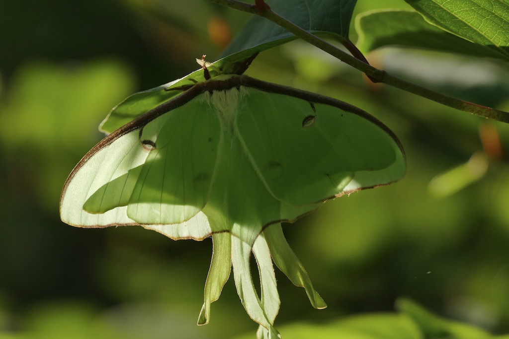 The sight affected me as tropical, and I suppose it is the northern verge of some species. It suggests into what productions Nature would run if all the year were a July. By night it is active, for, though I thought it dying at first, it made a great noise in its prison, a cigar-box, at night. When the day returns, it apparently drops wherever it may be, even into the water, and dozes till evening again. Is it called the emperor moth? [It’s a luna moth]