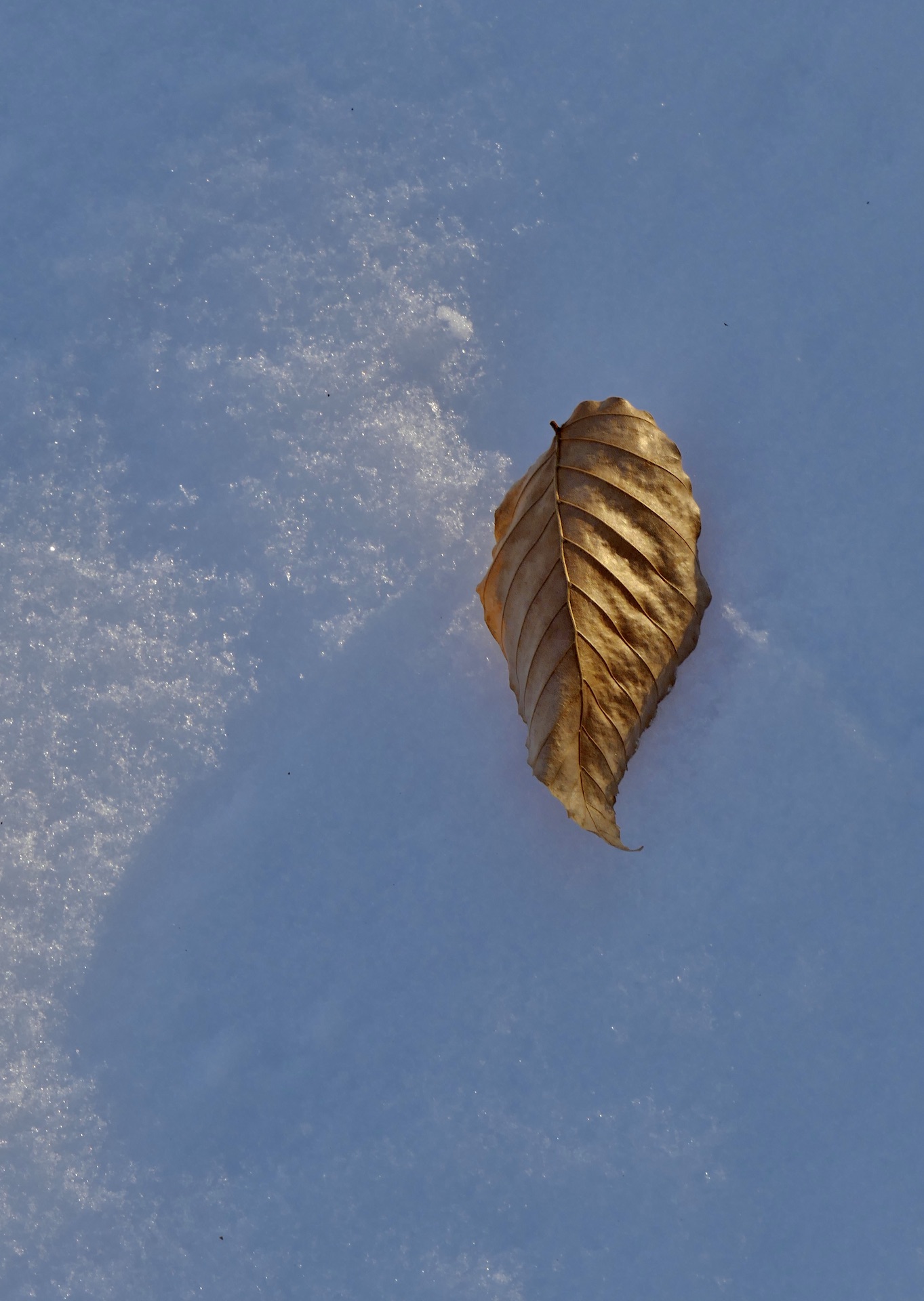 There are a few inches of light snow on top of the little, hard and crusted, that I walked on here last, above the snow ice. The old tracks are blotted out, and new and fresher ones are to be discerned. It is a tabula rasa. These fresh falls of snow are like turning over a new leaf of Nature’s Album. At first you detect no track of beast or bird, and Nature looks more than commonly silent and blank. You doubt if anything has been abroad, though the snow fell three days ago, but ere long the track of a squirrel is seen making to or from the base of a tree, or the hole where he dug for acorns, and the shells he dropped on the snow around that stump.