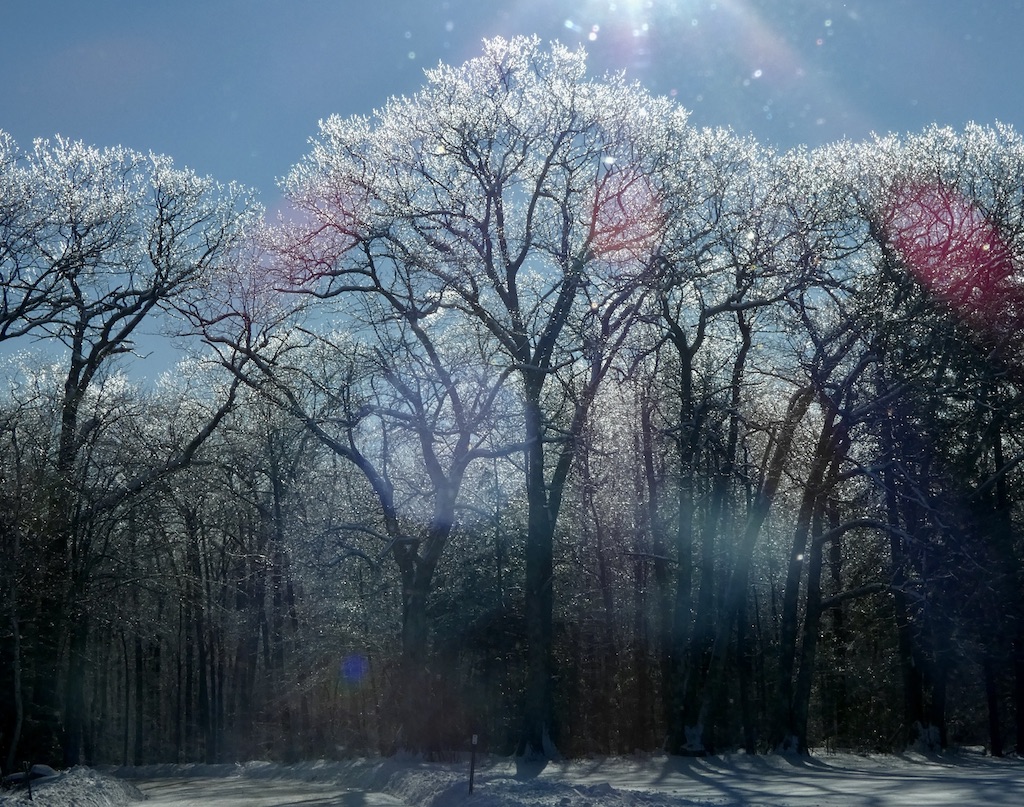 …every twig and trunk and blade of withered sedge is thus covered or cased with ice, and accordingly…when you go facing the sun, the hollows look like a glittering shield set round with brilliants…