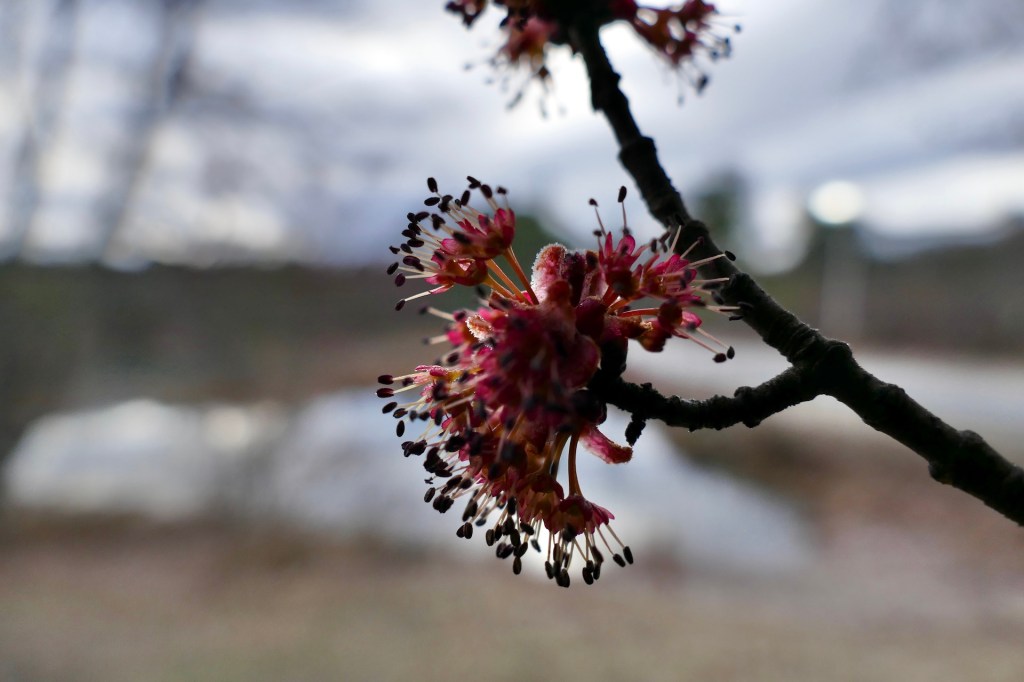 Why are some maples now in blossom so much redder than others.