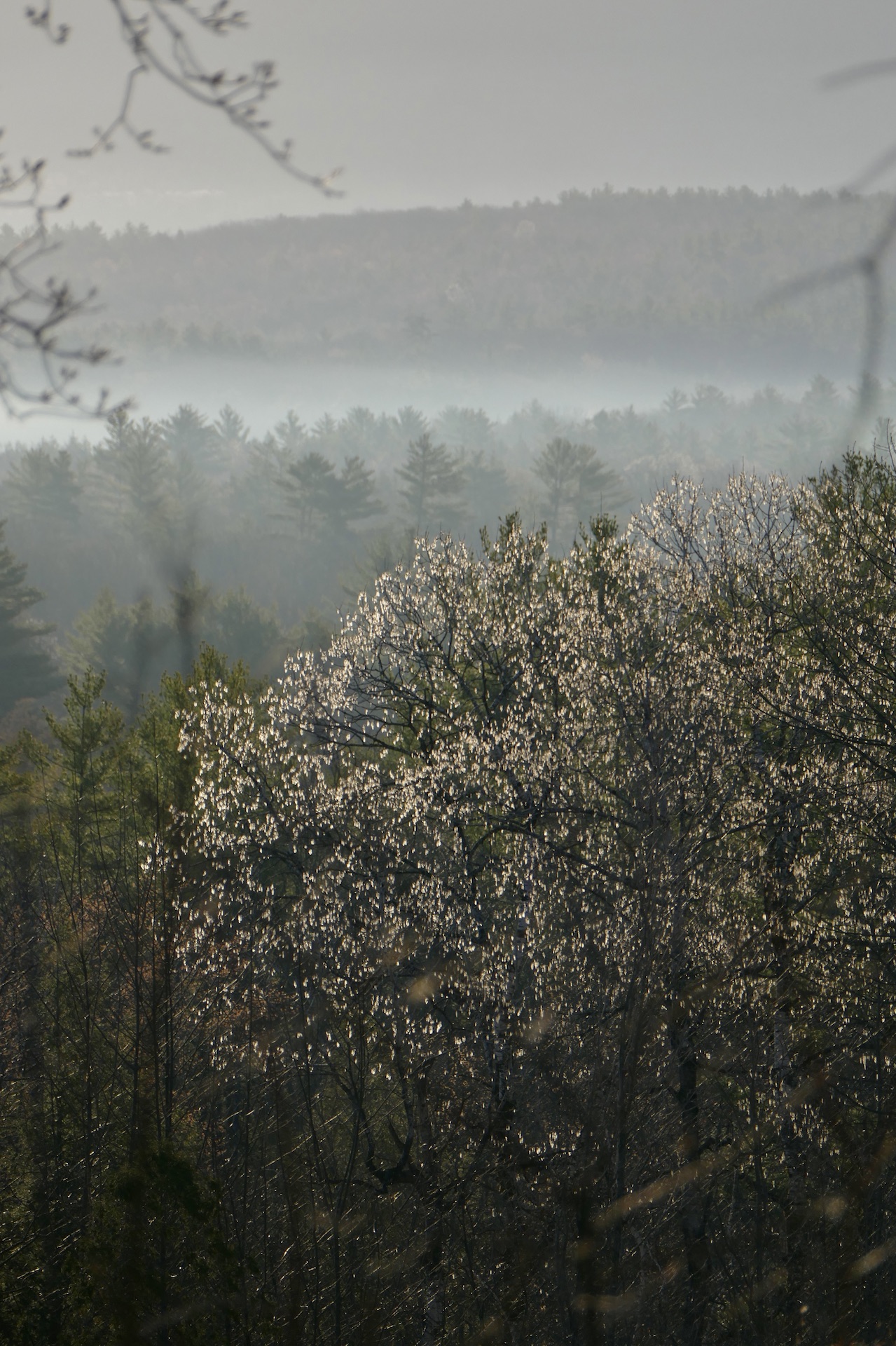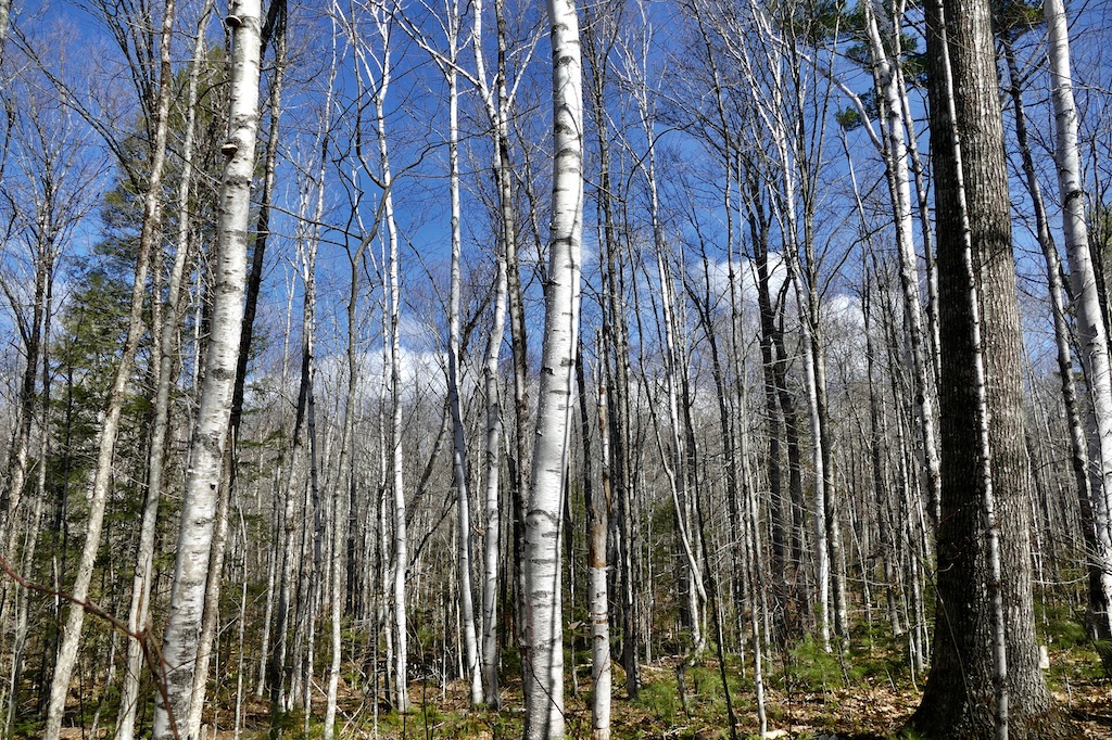 Not finding the birches, I returned to the first swamp and tapped two more white birches. They flow generally faster than the red or white maples when I tried them. I sit on a rock in the warm, sunny swamp, where the ground is bare, and wait for my vessels to be filled. It is perfectly warm and perhaps drier than ever here. The great butterflies, black with buff-edged wings, are fluttering about, and flies are buzzing over rock. The spathes of the skunk-cabbage stand thickly amid the dead leaves, the only obvious sign of vegetable life. A few rods off I hear some sparrows busily scratching the floor of the swamp, uttering a faint tseep tseep and from time to time a sweet strain. It is probably the fox-colored sparrow. These always feed thus, I think, in woody swamps, a flock of them rapidly advancing, flying before one another, through the swamp. A robin peeping at a distance is mistaken for a hyla. A gun fired at a muskrat on the other side of the island towards the village sounds like planks thrown down from a scaffold, borne over the water. Meanwhile I hear the sap dropping into my pail. The birch sap flows thus copiously before there is any other sign of life in the tree, the buds not visibly swollen. Yet the aspen, though in bloom, shows no sap when I cut it, nor does the alder. Will their sap flow later? Probably this birch sap, like the maple, flows little if any at night. It is remarkable that this dead-looking trunk should observe such seasons, —-that a stock should distinguish between day and night.