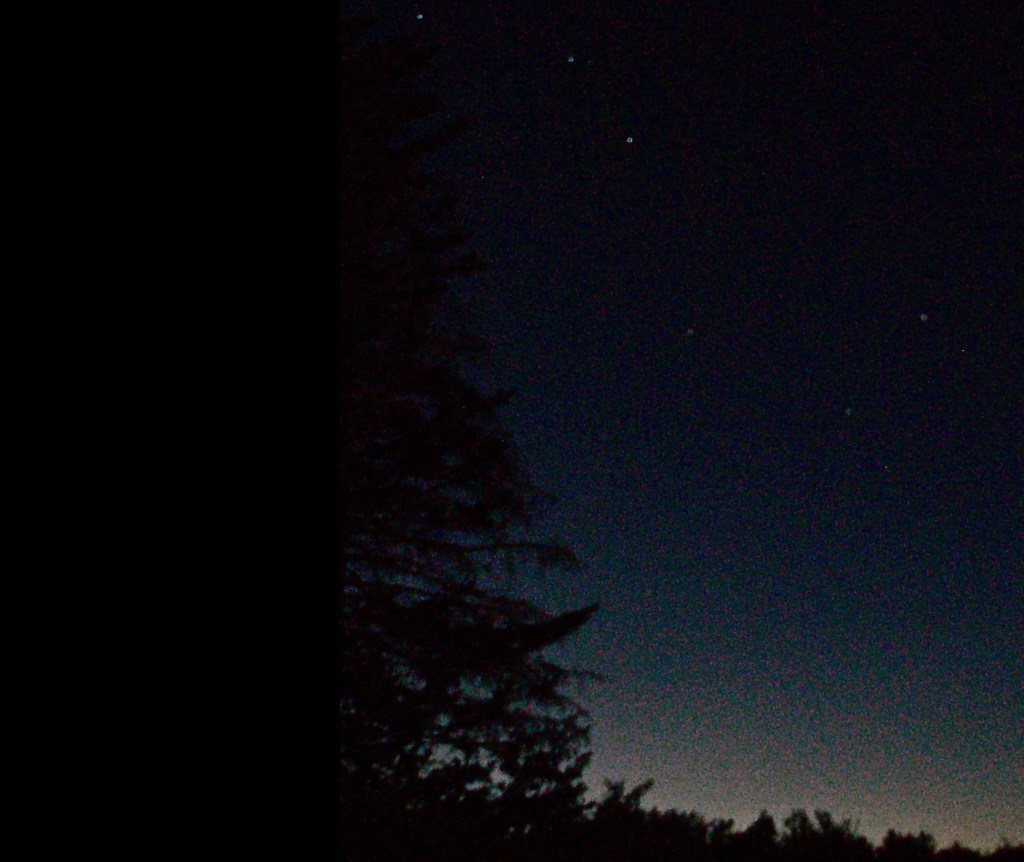 By night no flowers, at least no variety of colors. The pinks are no longer pink; they only shine faintly, reflecting more light. Instead of flowers underfoot, stars overhead.
