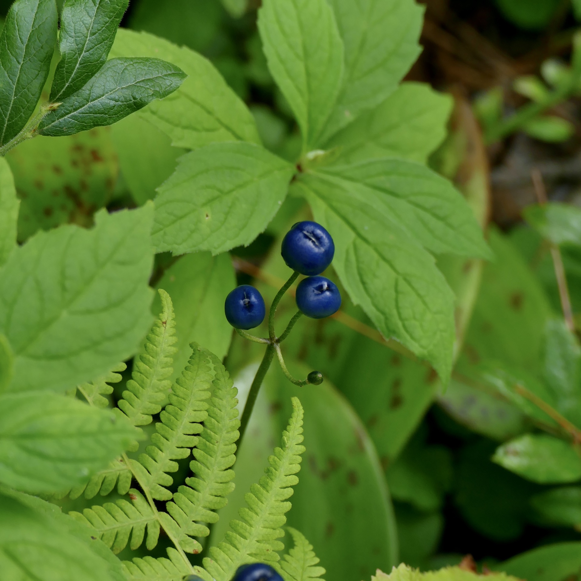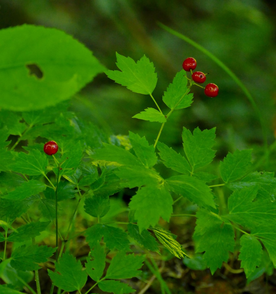 I also saw here, or soon after, the red cohosh berries, ripe (for the first time in my life).