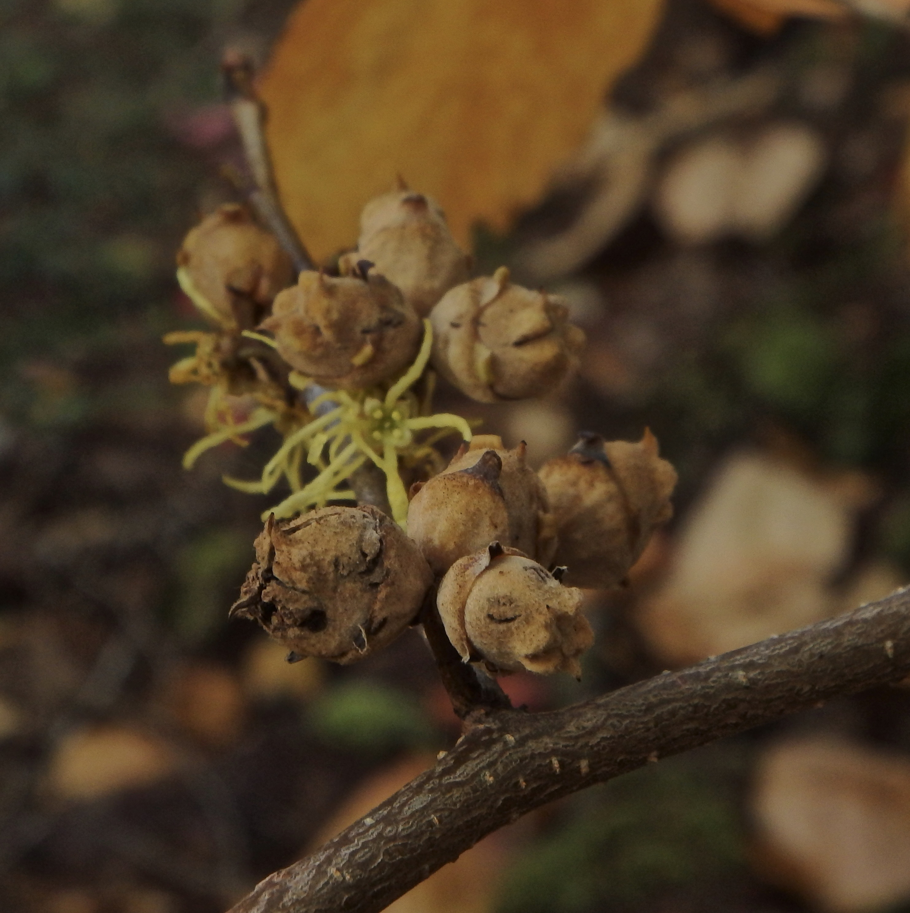 The Salix alba is a light and silvery green. Since the red maples generally fell, the chestnuts have been yellowing, and the oaks reddening and yellowing. The chestnuts are now in their prime, though many leaves are fallen. The forest, which showed but little ripeness ten days ago, except about its edges and here and there as you looked down on it from a height, is now seen to be generally of a mellow brownish yellow, like perfectly ripe fruit, which we know to be more perfectly ripe for it being a little specked. By the brook, witch-hazel, as an underwood, is in the height of its change, but elsewhere exposed large bushes are bare. Rheus toxicodenron is fallen. The hornbeam is a greenish yellow, or yellow as it were dusted with green. The maple-leaved viburnum, now at its height, varies, with more or less of shade, from dark crimson through a delicate pale crimson to whitish. The sage willow, a light yellow, in prime, though hardly noticed amid the more conspicuous oaks. Larches have begun to change in water.