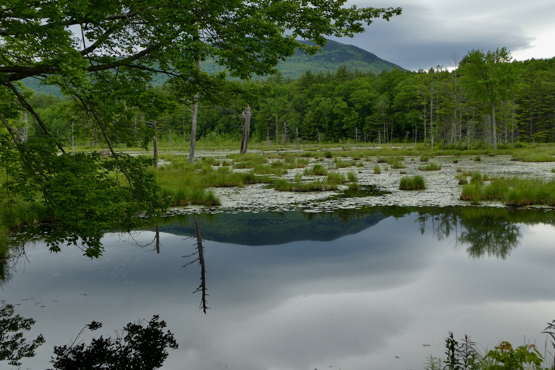 For a week past we have had washing days. The grass waving, and trees having leaved out, their boughs wave and feel the effect of the breeze. Thus new life and motion is imparted to the trees. The season of waving boughs; and the lighter under sides of the new leaves are exposed. This is the first half of June. Already the grass is not so fresh and liquid-velvety a green, having much of it blossom[ed] and some even gone to seed, and it is mixed with reddish ferns and other plants, but the general leafiness, shadiness, and waving of grass and boughs in the breeze characterize the season.
