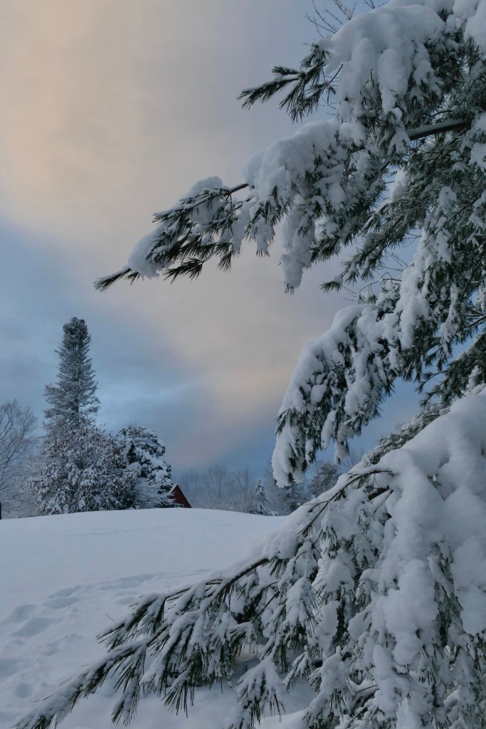 This morning, when I woke, I found it snowing, the snow fine and driving almost horizontally, as if it had set in for a long storm, but a little after noon it ceased snowing and began to clear up, and I set forth for a walk. The snow which we have had for the past week or 10 days has been remarkably light & dry. It is pleasant walking in the woods now when the sun is just coming out & shining on the woods freshly covered with snow— At a distance the oak woods look very venerable—a fine hale wintry aspect things wear and the pines all snowed up even suggest comfort. Where boughs cross each other much snow is caught—which now in all woods is gradually coming down.