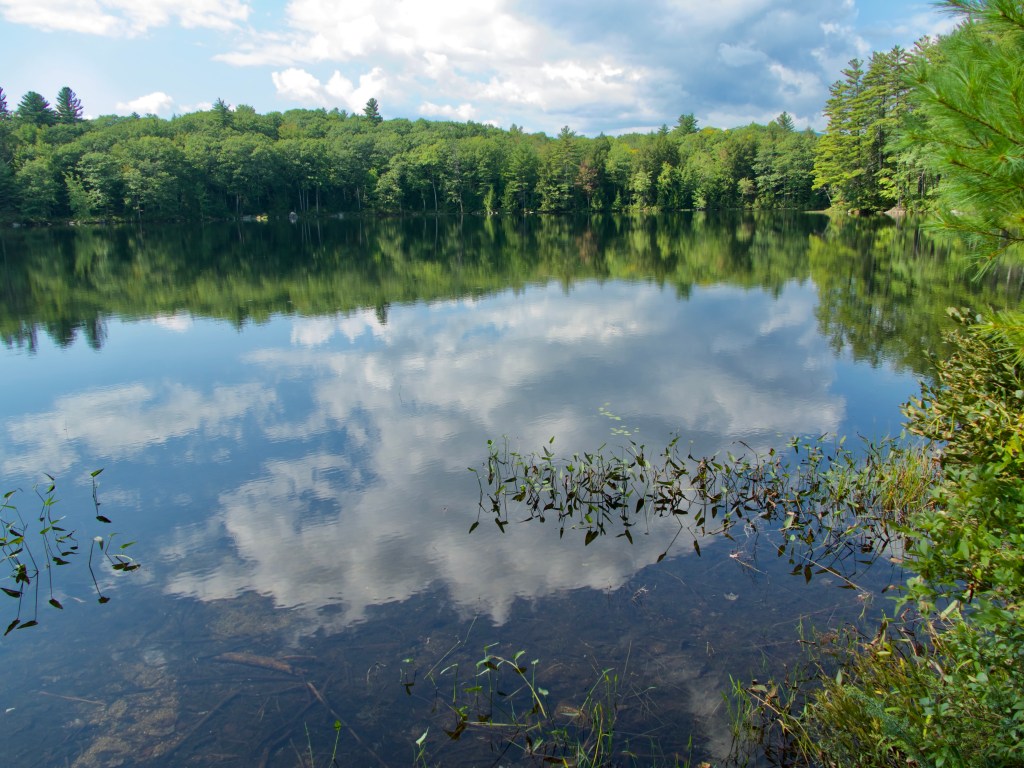 September 16, 1852 September 16, 2024 by allandibiase in Thoreau’s Journal: The rippled blue surface of Fair Haven from the Cliffs—with its smooth white border where weeds preserve the surface smooth––a placid sliver plated rim–– The pond is like the sky with a border of whitish clouds in the horizon. Share this: Click to share on X (Opens in new window) X Click to share on Facebook (Opens in new window) Facebook Like Loading... Related