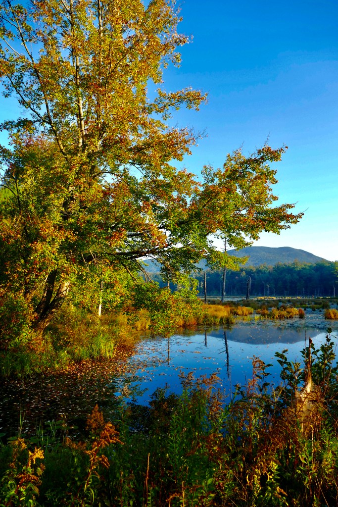 The red maple has fairly begun to blush in some places by the river. I see one, by the canal behind Barrett’s mill, all aglow against the sun. These first trees that change are the most interesting, since they are seen against others still freshly green — such brilliant red on green. I go half a mile out of my way to examine such a red banner. A single tree becomes the crowning beauty of some meadowy vale and attracts the attention of the traveller from afar. At the eleventh hour of the year, some tree which has stood mute and inglorious in some distant vale thus proclaims its character as effectually as if it stood by the highway-side, and it leads our thoughts away from the dusty road into those brave solitudes which it inhabits. The whole tree, thus ripening in advance of its fellows, attains a singular preeminence. I am thrilled at the sight of it, bearing aloft its scarlet standard for its regiment of green-clad foresters around. The forest is the more spirited.