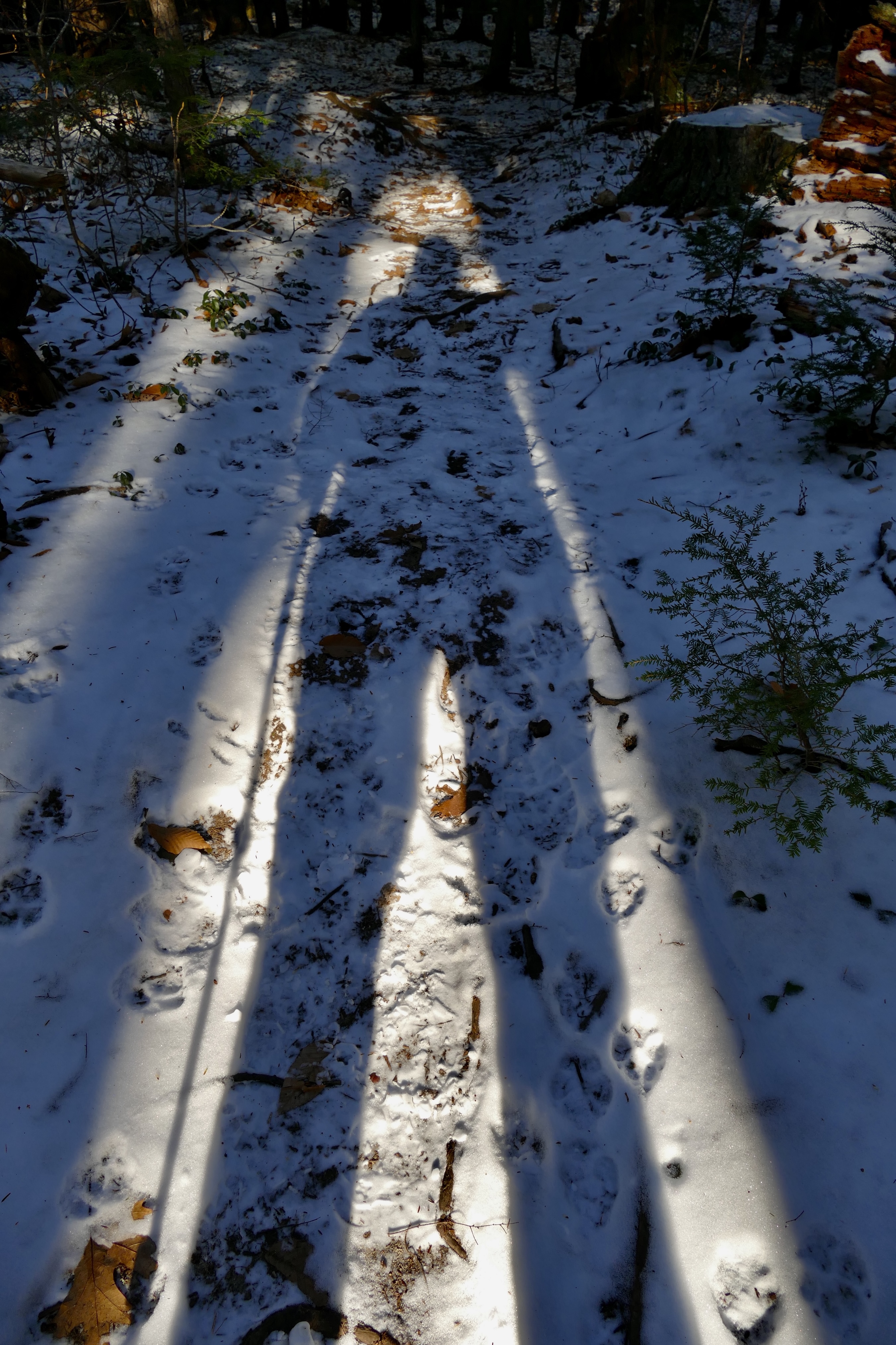But I go out shortly after the first snow has fallen, and lo, here is the track of a sportsman and his dog in my secluded path, and probably he preceded me in the summer as well. But my hour is not his, and I may never meet him.