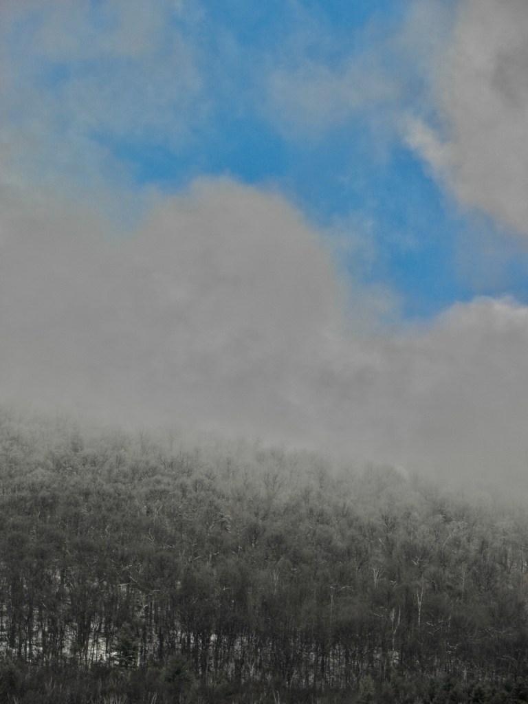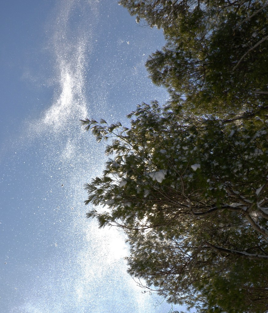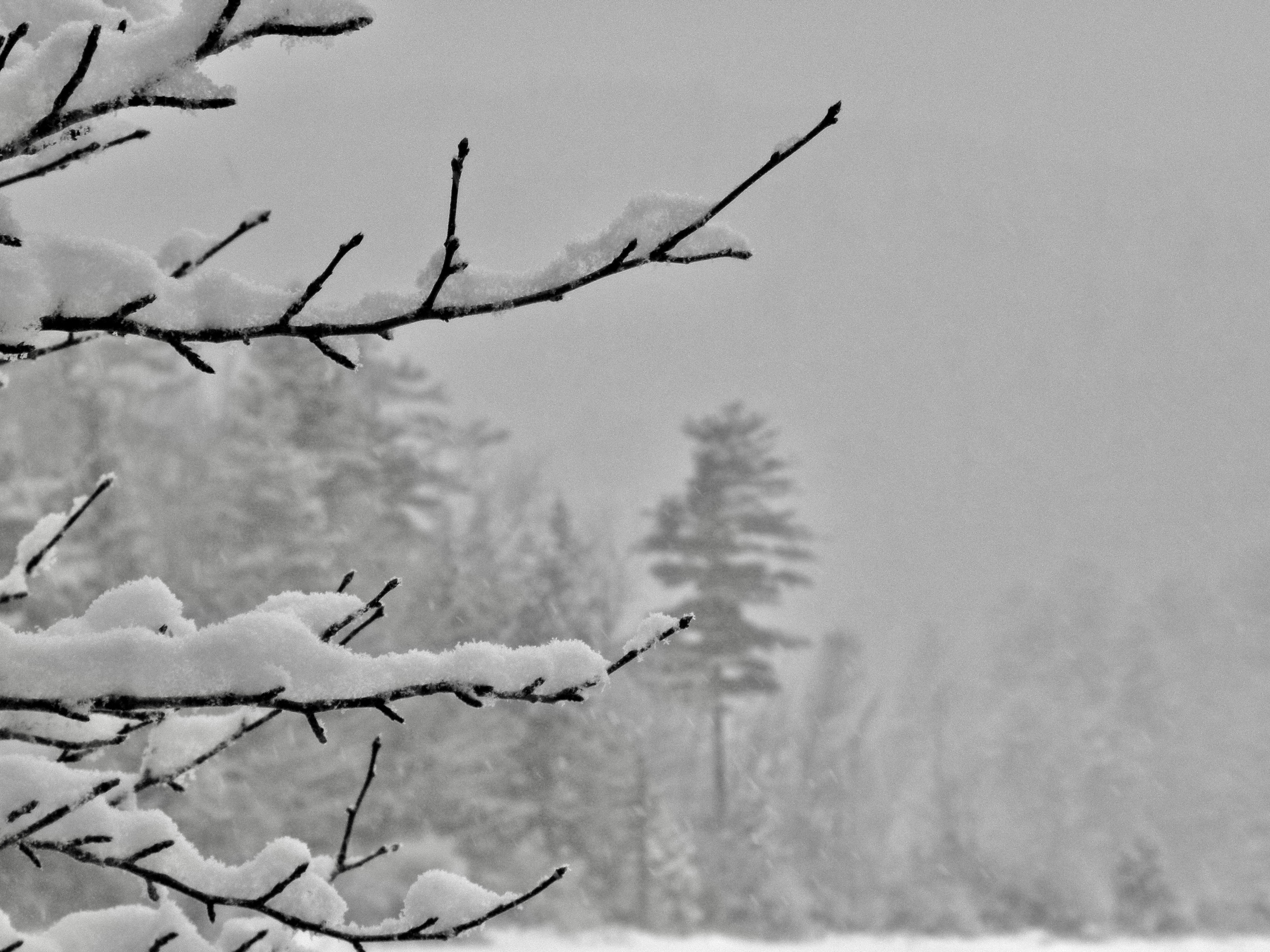 But it is only when fresh that this snow on the trees is beautiful. Already, before the storm is over, the surface of the snow in the high woods is full of indentations and hollows where some of this burden has fallen.