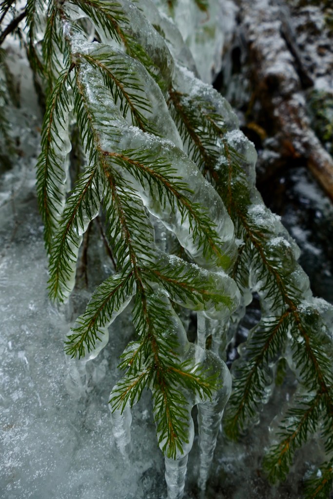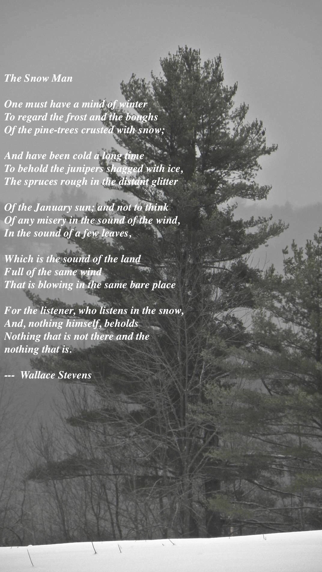White walls of snow rest on the boughs of trees, in height two or three times their thickness. These white irregular arms give the forest a wintry and picturesque look at a distance. The evergreens, especially the pitch pine, often bear large irregular white burdens, agreeably diversified and loopholed by the interstices of the plumes.