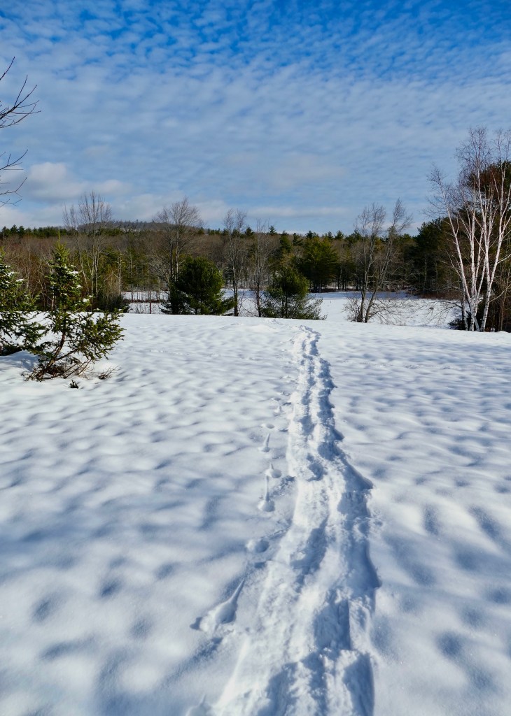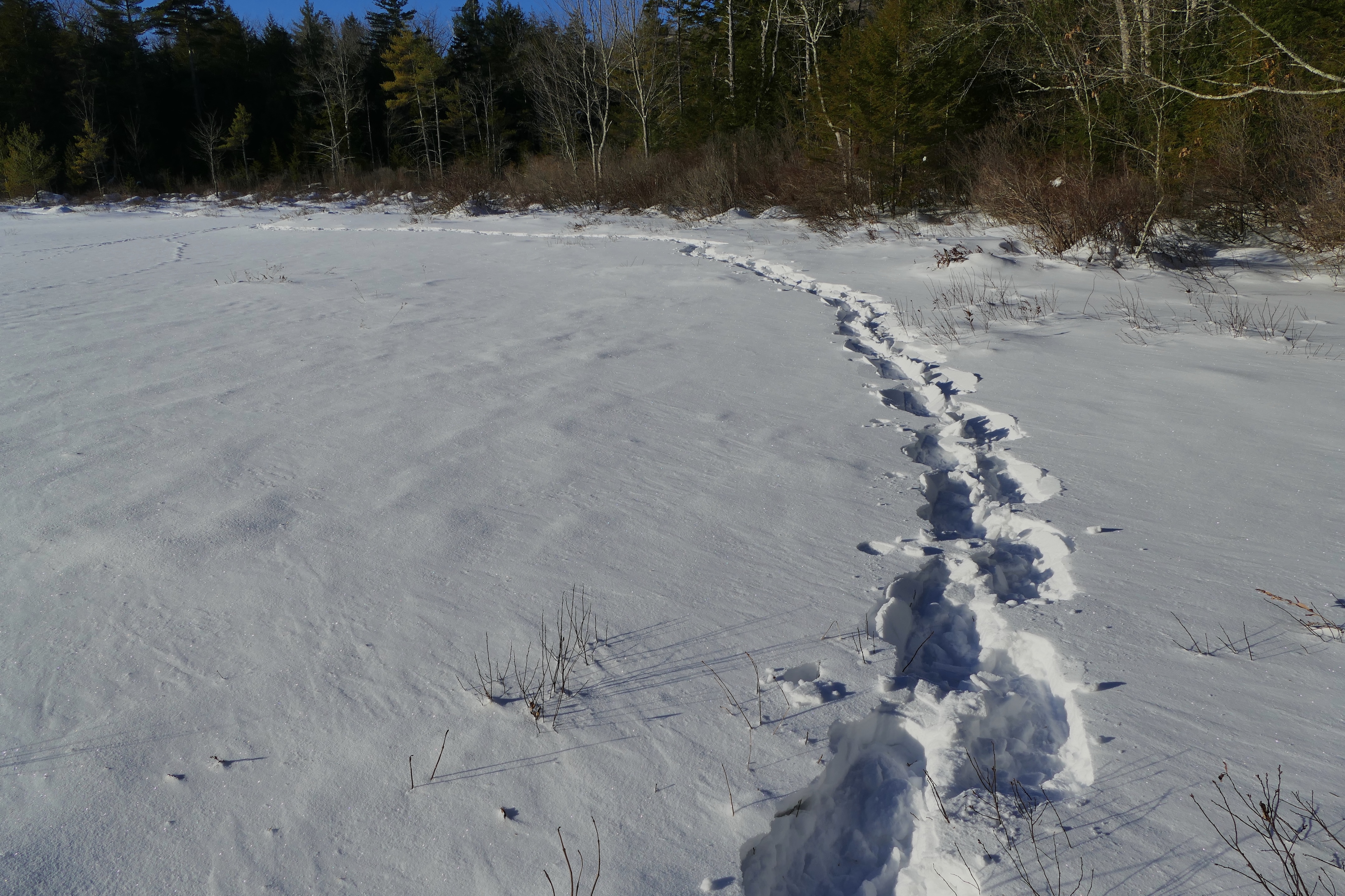 I penetrate to islets inaccessible in summer, my feet slumping to the sphagnum far out of sight beneath, where the alderberry glows yet….and perchance a single tree sparrow lisps by my side; where there are few tracks even of wild animals. Perhaps only a mouse or two have burrowed up by the side of some twig, and hopped away in straight lines on the surface of the light, deep snow, as if too timid to delay, to another hole by the side of another bush, and a few rabbits have run in a path amid the blueberries and alders about the edge of the swamp. This is instead of a Polar Expedition, and going after Franklin.