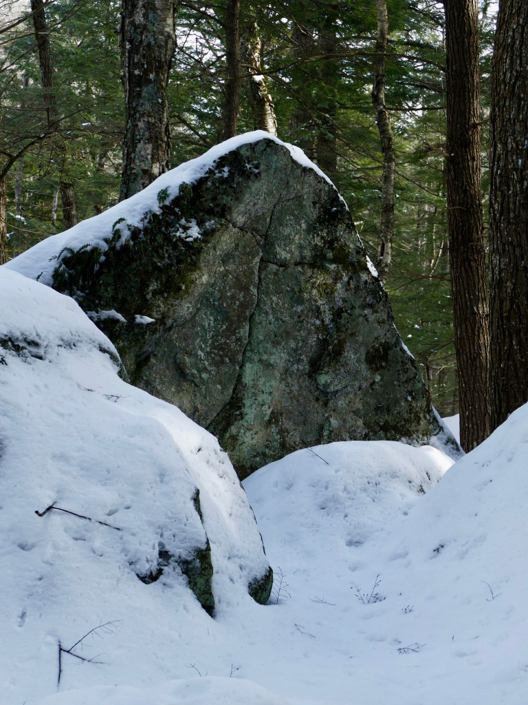 Snows again….The snow is very moist, with large flakes. Looking toward Trilllium wood, the nearer flakes appear to move quite swiftly, often making the impression of a continuous white line. They are also seen to move directly, and nearly horizontally. But the more distant flakes appear to loiter in the air, as if uncertain how they will approach the earth, or even to cross the course of the former, and are always seen as simple and distinct flakes. I think that this difference is simply owing to the fact that the former pass quickly over the field of view, while the latter are much longer in it.