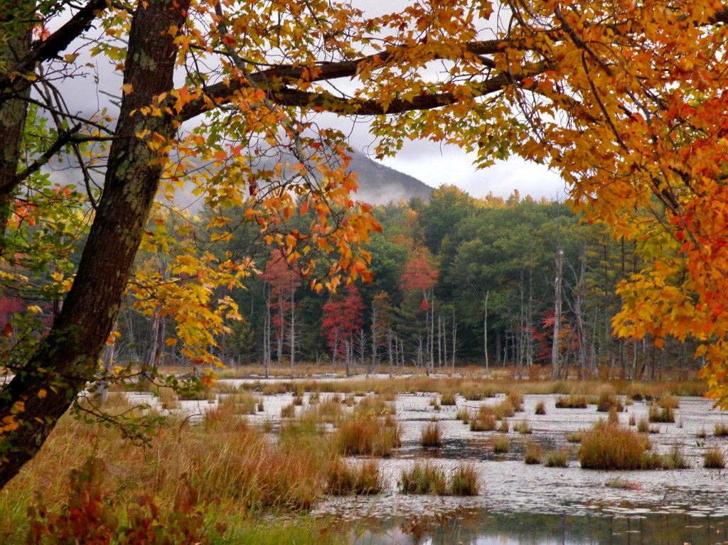 The intense brilliancy of the red-ripe maples scattered here and there in the midst of the green oaks & hickories on its hilly shore is quite charming. They are unexpectedly & incredibly brilliant –especially on the western shore & close to the waters edge, where alternating with yellow birches & poplars & green oaks—they remind me of a line of soldiers red coats & riflemen in green mixed together.