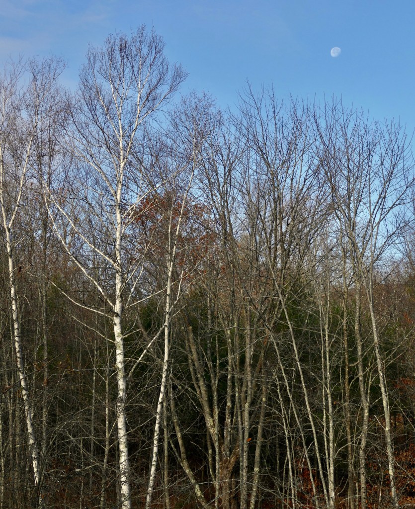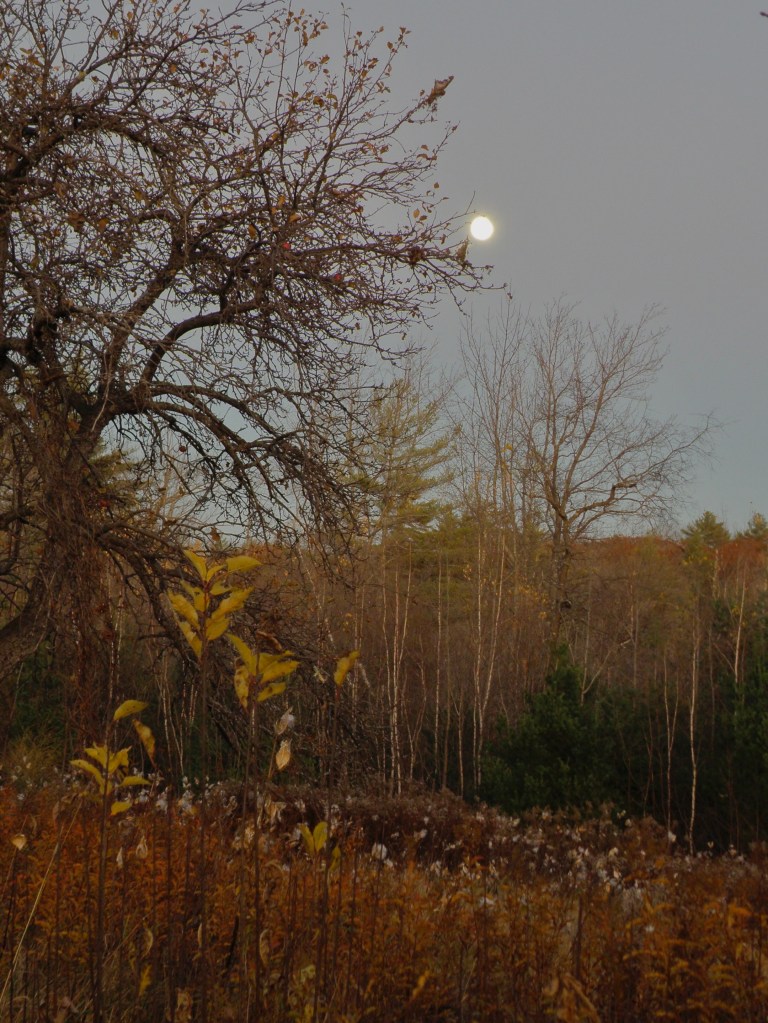 Nature has many scenes to exhibit, and constantly draws a curtain over this part or that. She is constantly repainting the landscape and all surfaces, dressing up some scene for our entertainment. Lately we had a leafy wilderness, now bare twigs begin to prevail, and soon she will surprise us with a mantle of snow….