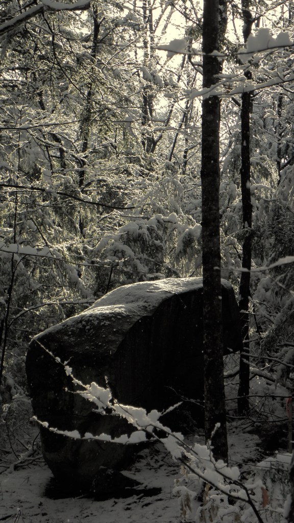 This morning, when I woke, I found it snowing, the snow fine and driving almost horizontally, as if it had set in for a long storm, but a little after noon it ceased snowing and began to clear up, and I set forth for a walk. The snow which we have had for the past week or 10 days has been remarkably light & dry. It is pleasant walking in the woods now when the sun is just coming out & shining on the woods freshly covered with snow—