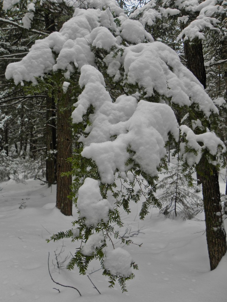 The snow hangs on the trees as the fruit of the season. In those twigs which the wind has preserved naked, there is a warmer green for the contrast. The whole tree exhibits a kind of interior and household comfort—a sheltered and covert aspect— It has the snug inviting look of a cottage on the Moors, buried in snows.